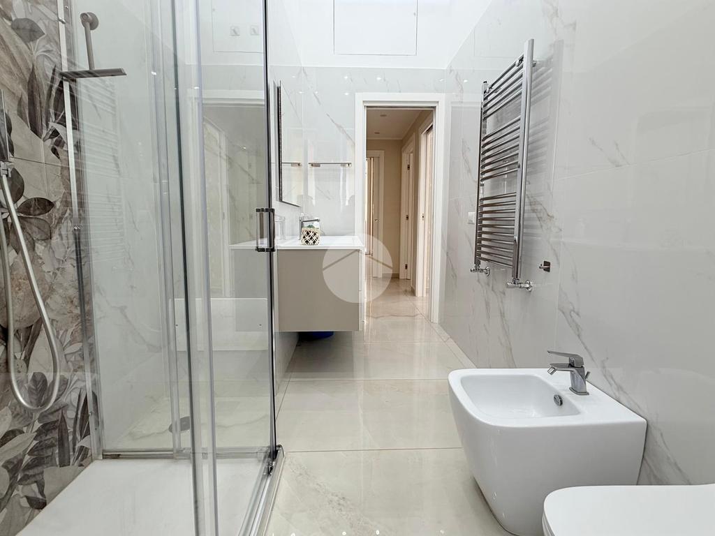 La soluzione, all'interno di un parco, è posta ad un primo piano di uno stabile che gode di ascensore ed è così composta: ingresso in una splendida zona living con cucina a vista, disimpegno, 3 camere da letto, di cui la principale dotata di servizio e cabina armadio. Oltre al bagno in camera, l'appartamento dispone di un secondo bagno finemente rifinito con materiali di ultima generazione.